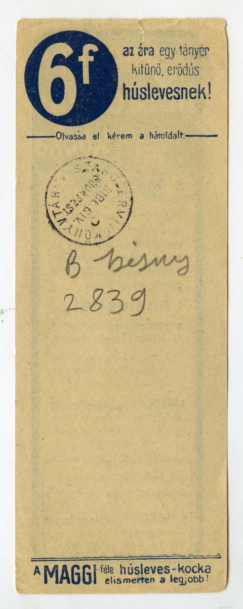 leves, leveskocka, levespor, főzés, háztartás, ételízesítő, reklámnyomtatvány, kisnyomtatvány, aprónyomtatvány, számolócédula