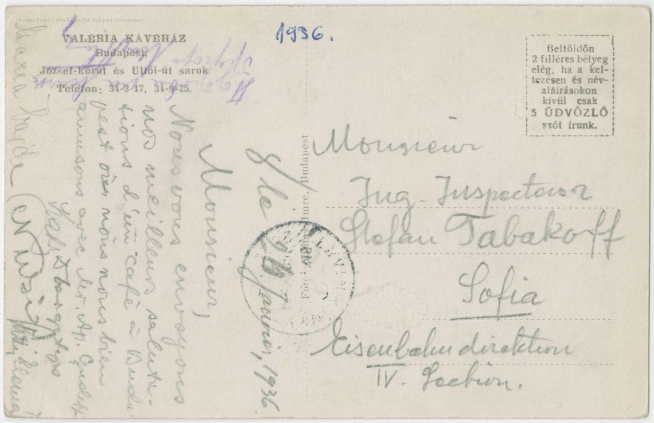kávéház, terasz, külső felvétel, neoreneszánsz, képes levelezőlap, 1930-as évek