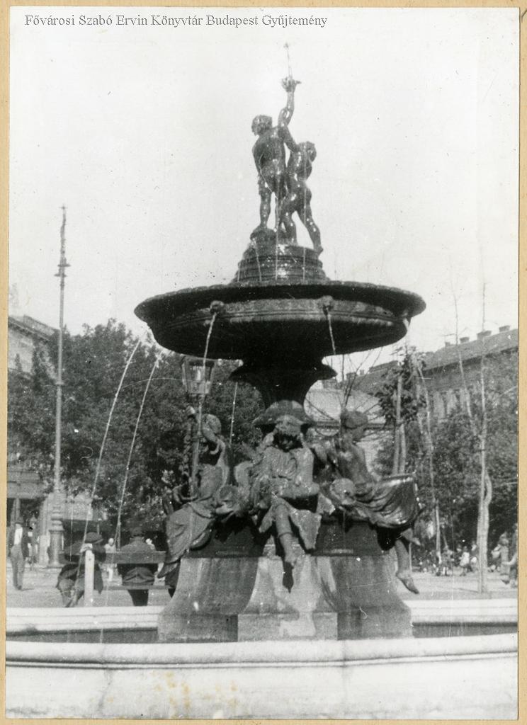 Budapest. 8. kerület. Rákóczi tér. Négy évszak kútszobor