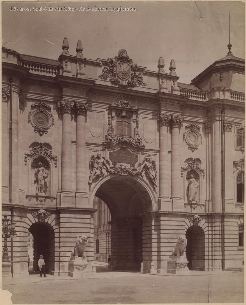 [Budai Királyi palota főkapuja és az oroszlánszobrok]