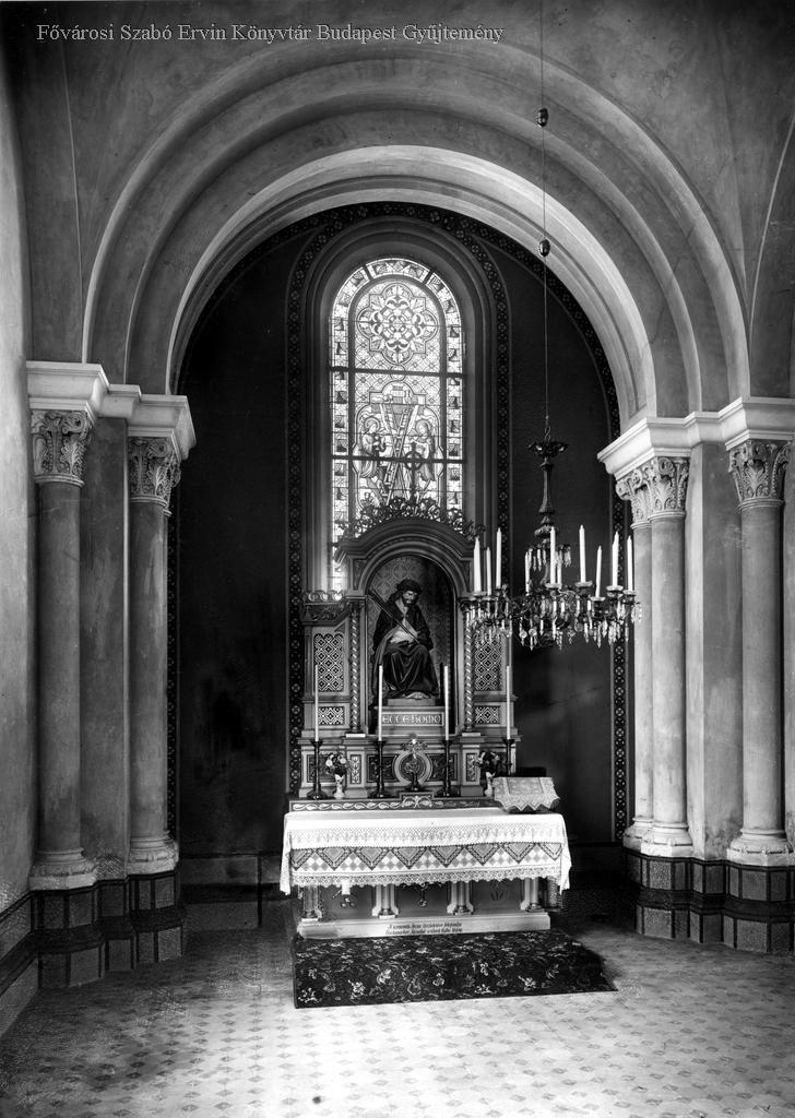 templom, katolikus egyház, oltár, festmény, üvegművesség, épületkép, belső felvétel, 1900 körül