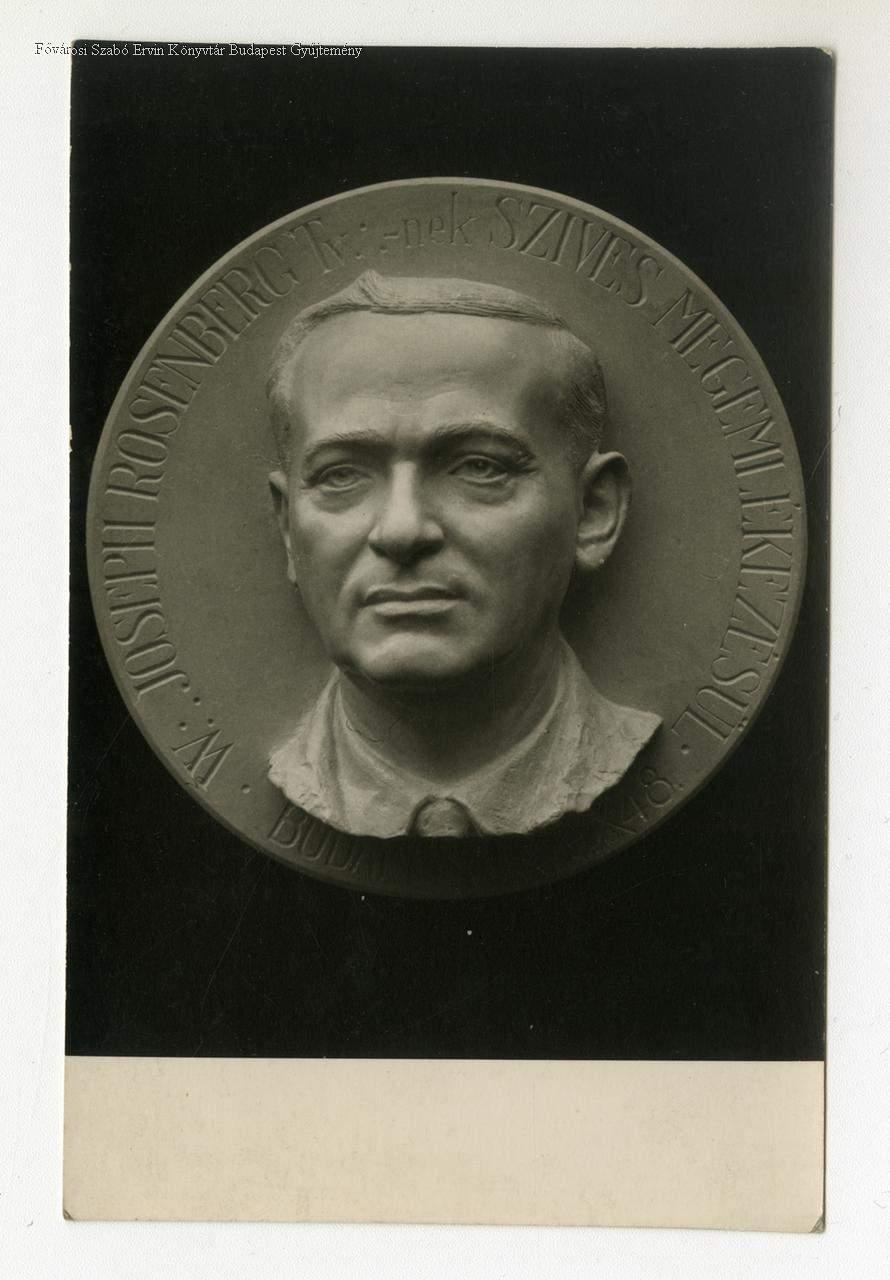 [W. Joseph Rosenberg Tv.-nek szíves megemlékezésül. Budapest 1948" feliratú érem, dombormű, Zsákodi Csiszér János alkotása]