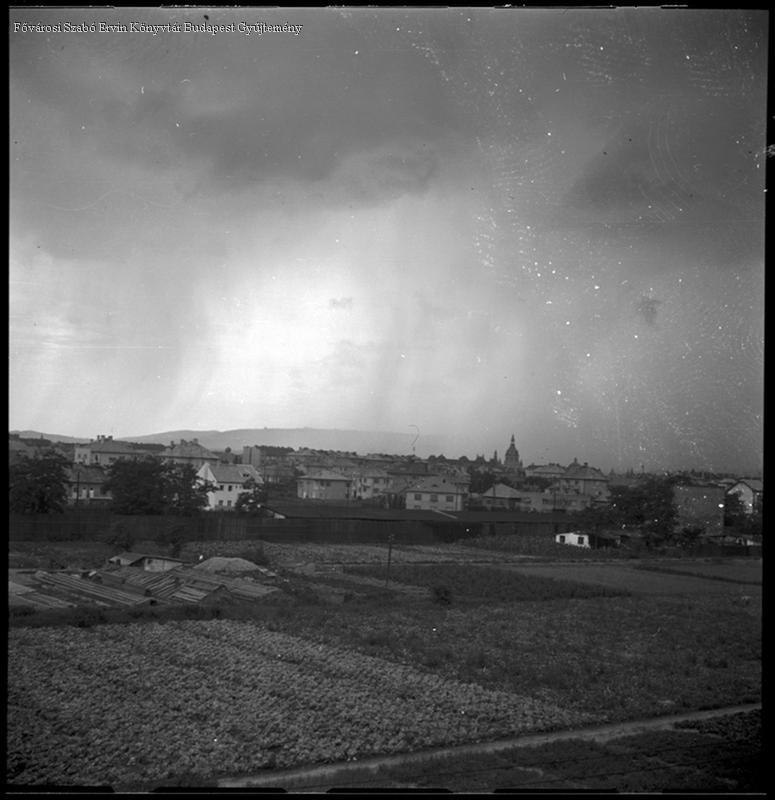 [Zuglói látkép viharos felhők alatt, 1944. július 5.] [bolgárkertészet]