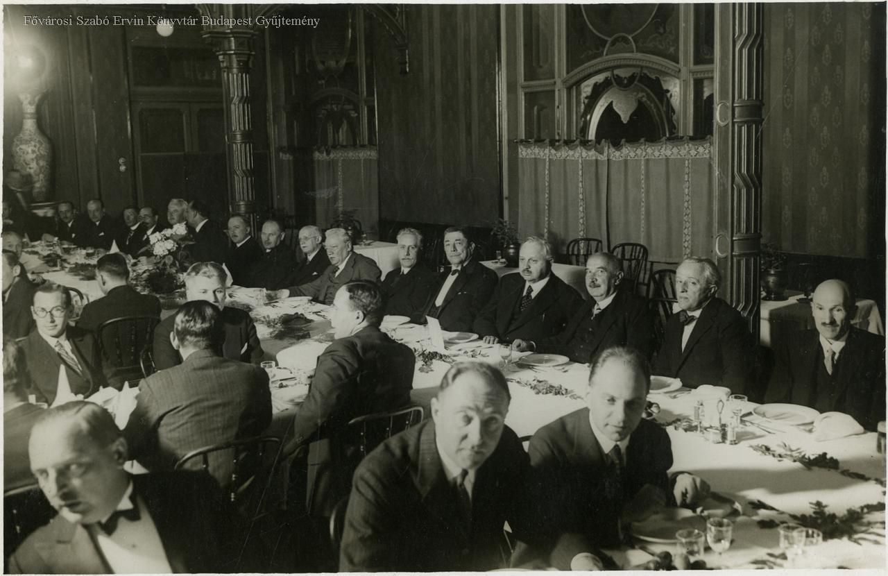 társaság, bankett, férfi, asztal, csoportkép, belső felvétel