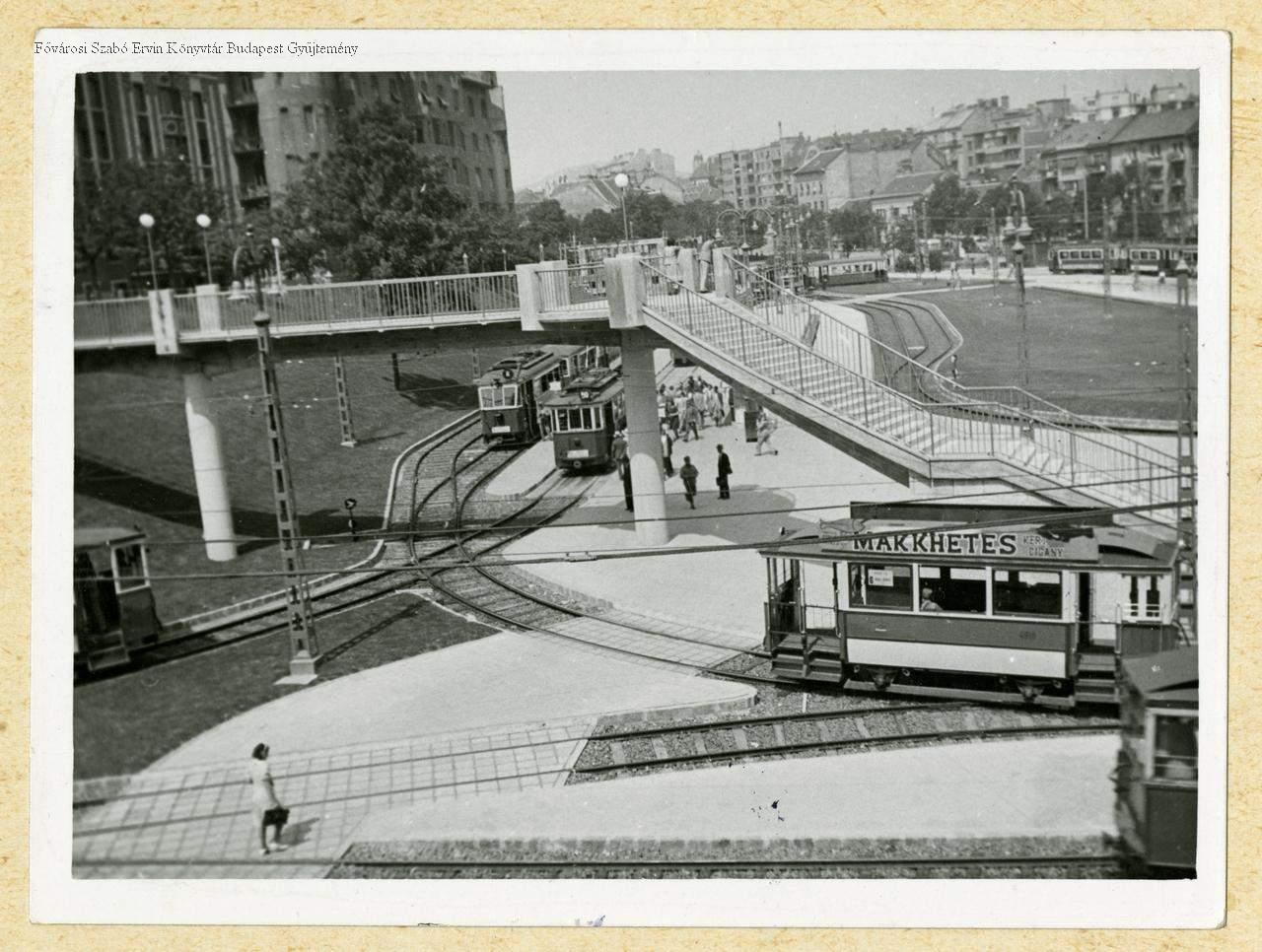 villamos kocsi, lépcső, közlekedési csomópont, végállomás, látkép, 1940-es évek