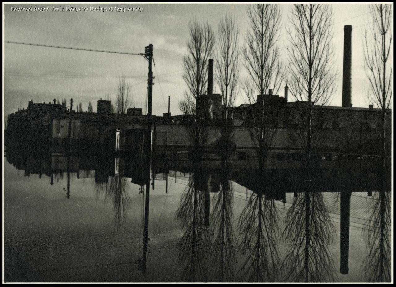 árvíz, tél, ipari épület, gyárkémény, látkép, 1941