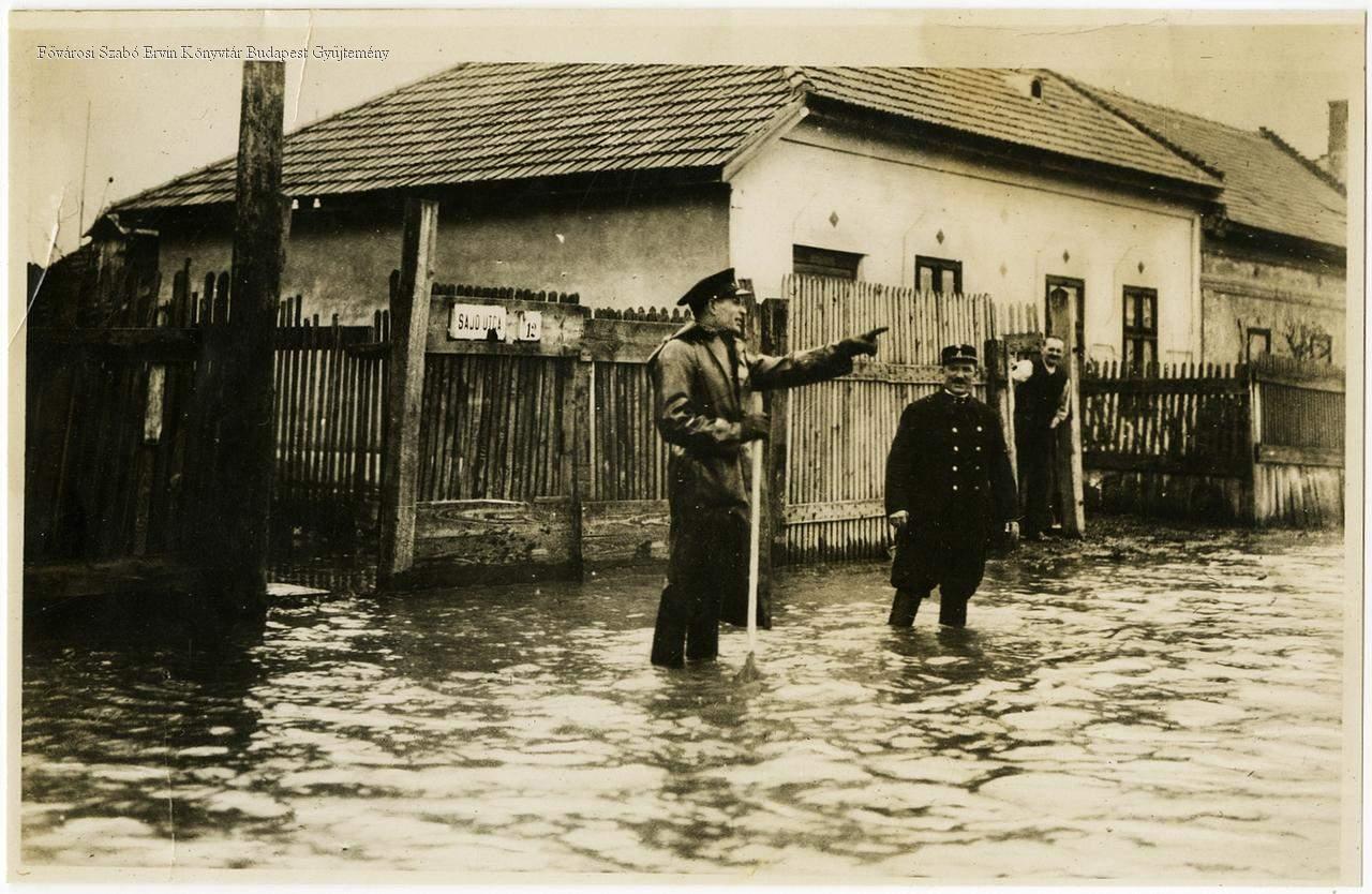 árvíz, ember, rendészet, lakóépület, utca, kerítés, 1937