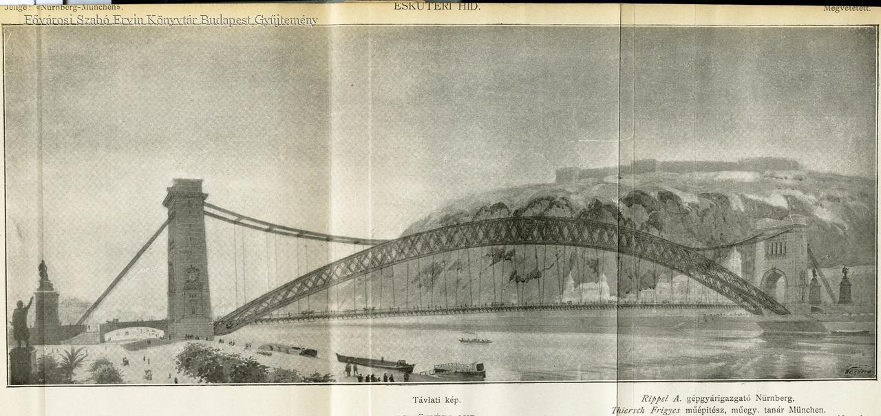 Eskütéri híd Jelige: "Nünberg-München" : Rippel A. gépgyárigazgató Nürnberg és Thiersch Frigyes műépítész, műegy.tanár München