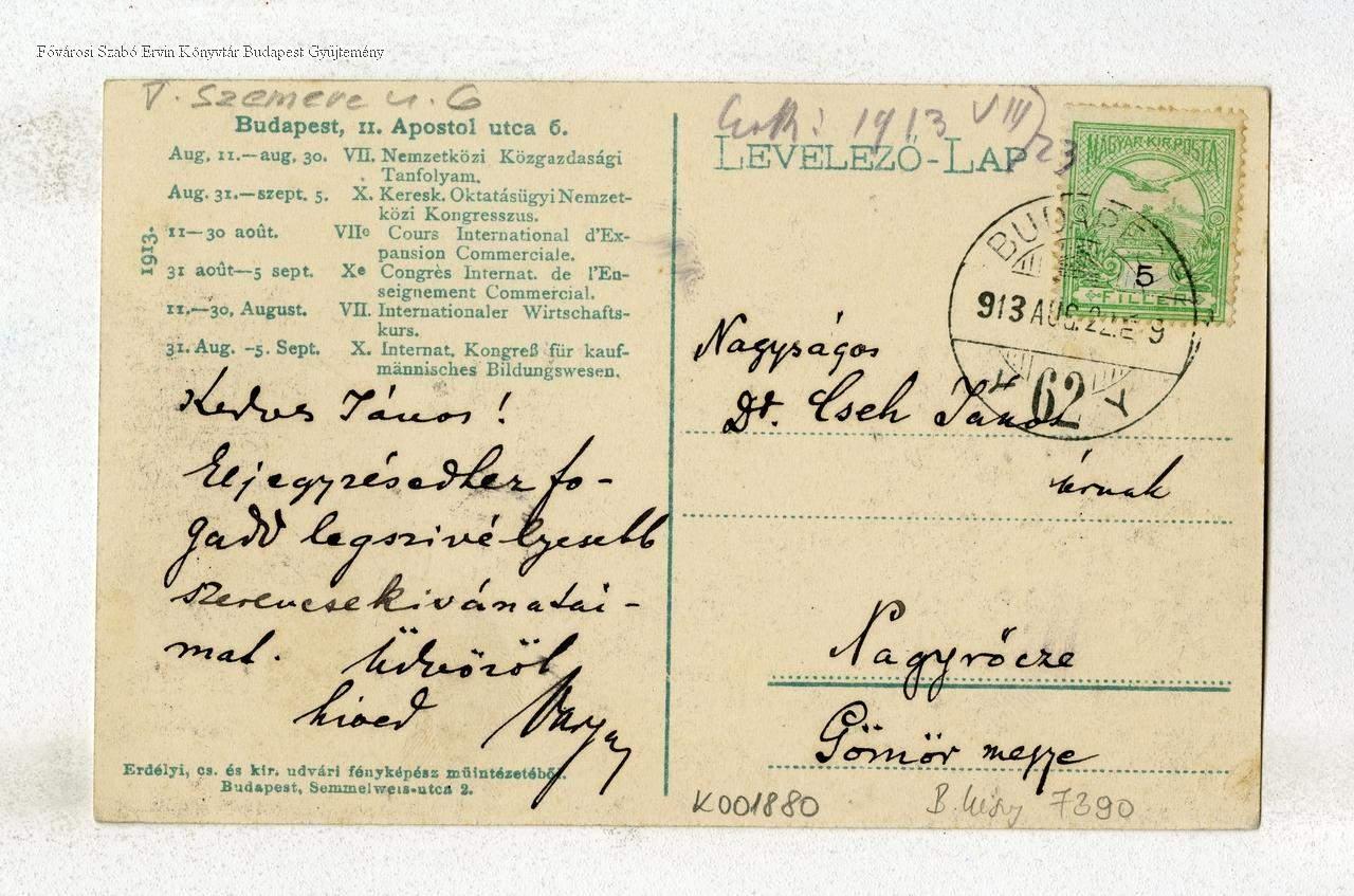 Hátlapjára az intézmény 1913. évi tanfolyamainak és kongresszusainak felsorolása