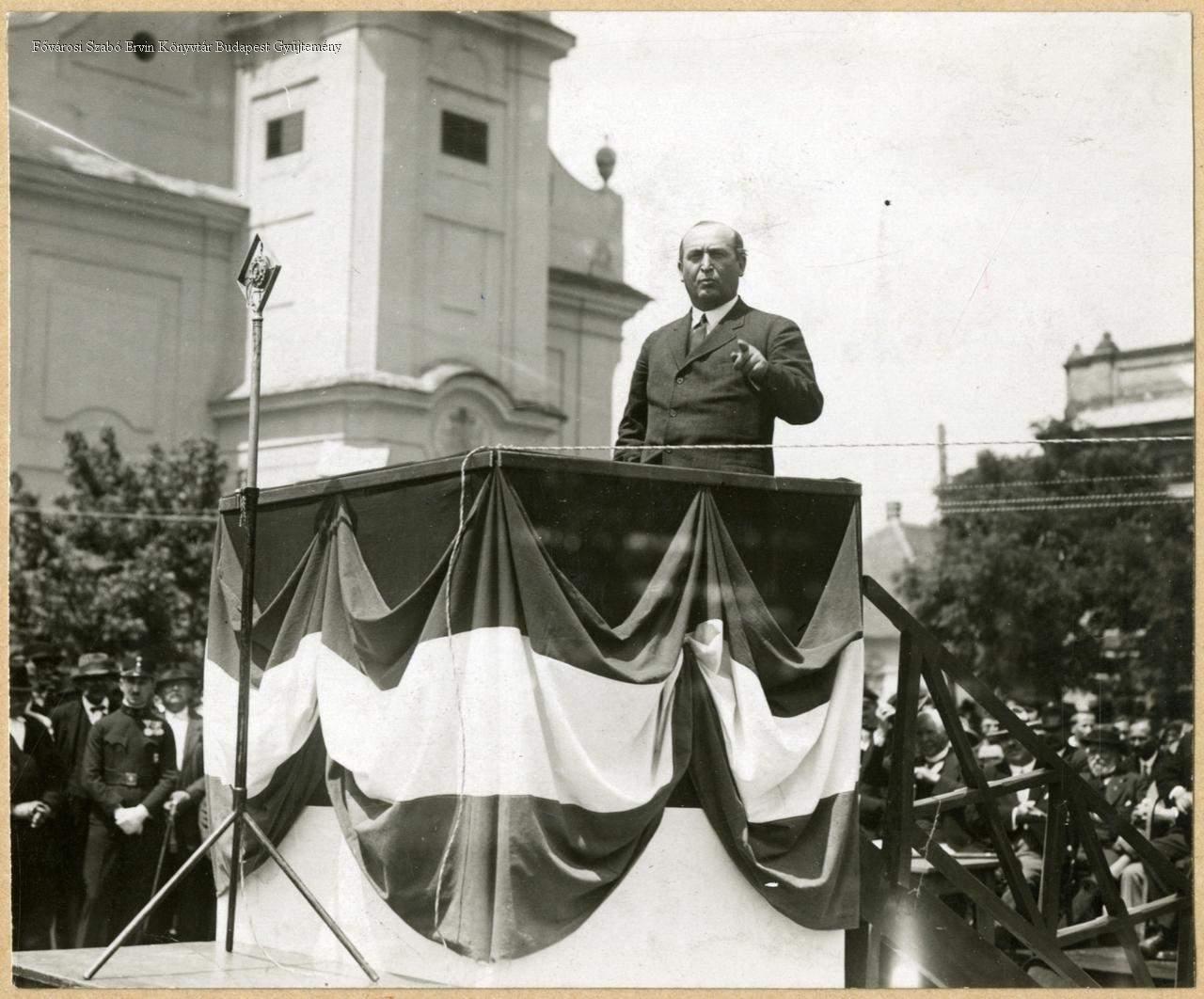 politikus, miniszterelnök, férfi, politikai beszéd, mikrofon, eseménykép, Horthy-korszak, 1932