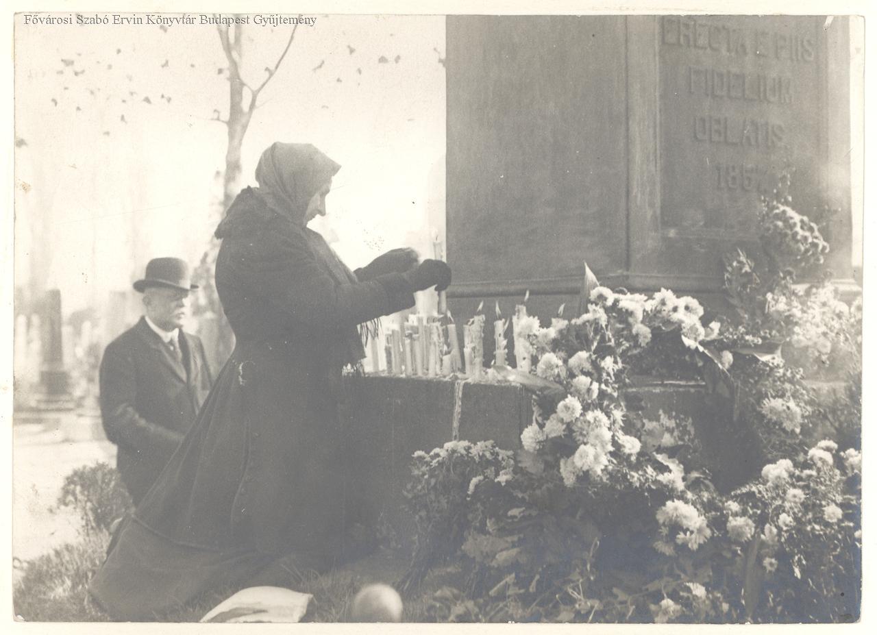 koszorú, gyertya, virág, halottak napja, gyászolás, temető, nő, 1920 körül