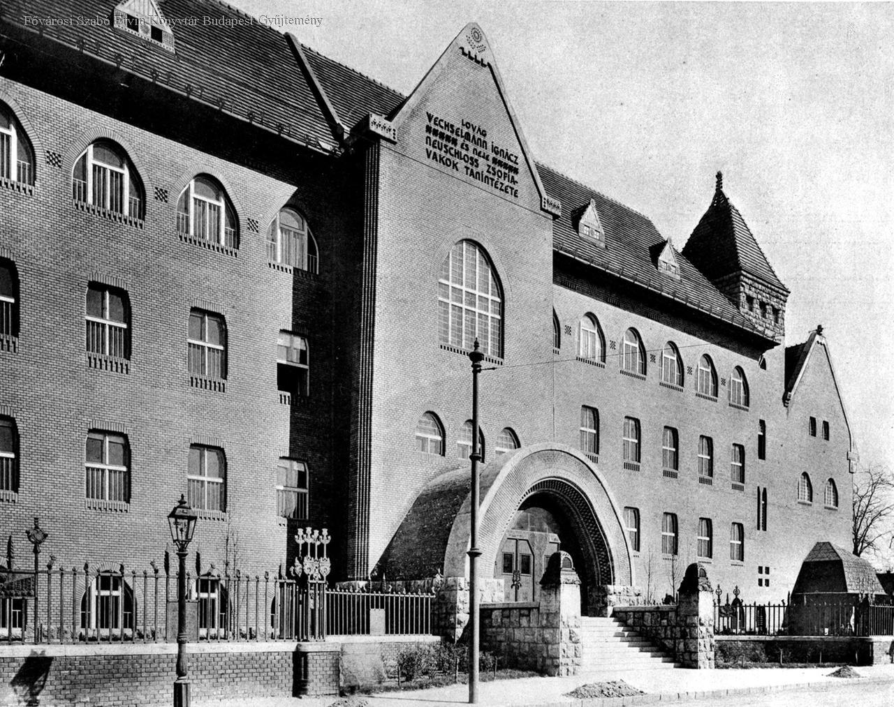 nevelőotthon, gyengénlátók és vakok iskolája, egészségügyi és szociális intézmény, épületkép, homlokzat, külső felvétel, 1910 körül