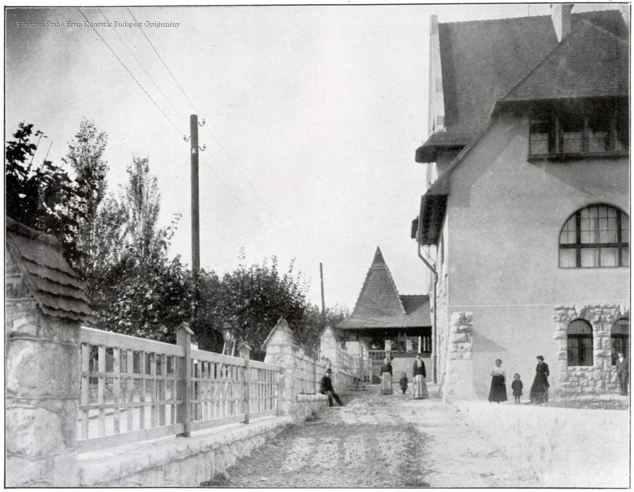 általános iskola, udvar, homlokzat, kerítés, épületkép, külső felvétel, népi építészet, 1913