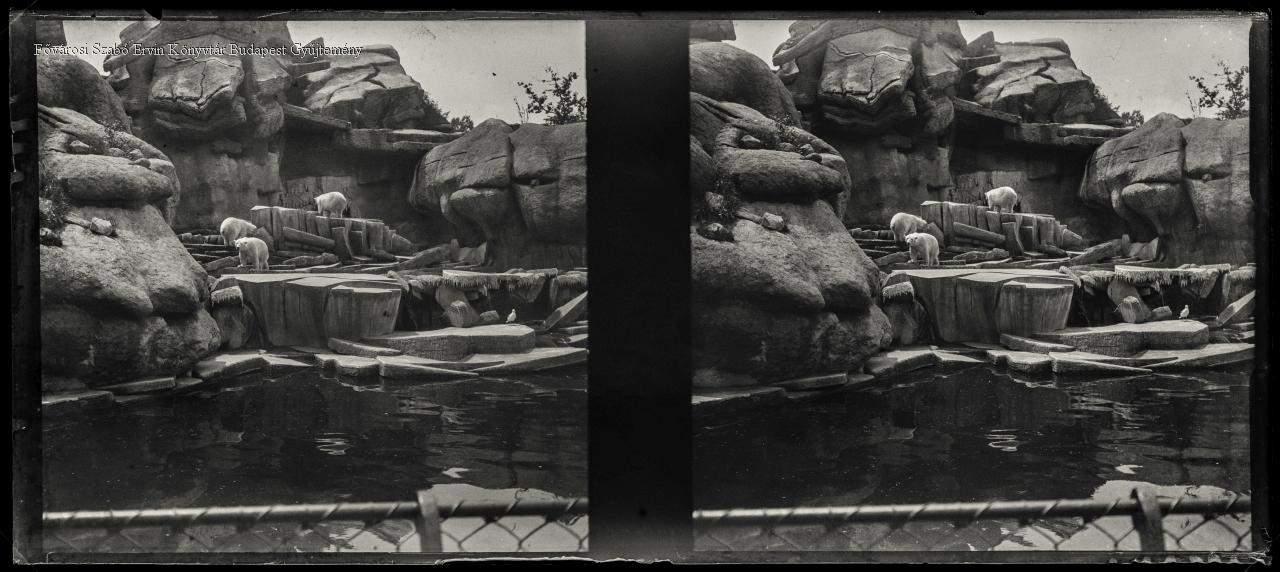 [Állatkert, jegesmedvék a Kissziklánál] [Budapest Zoo, polar bears at the Small Rock]