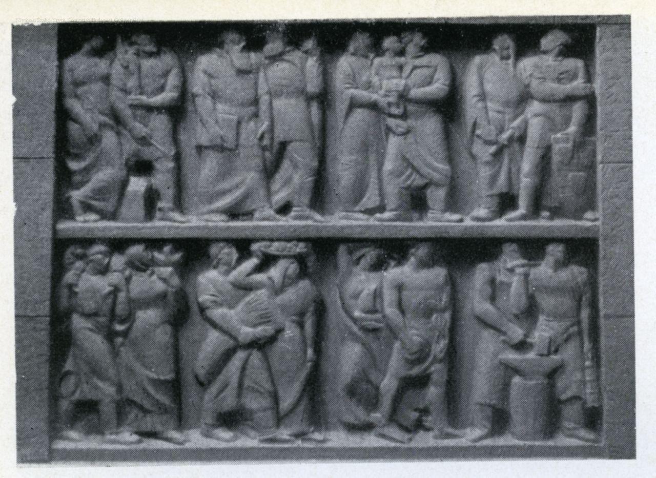 A Statisztikai Hivatal székházának főhomlokzati domborműve Szomor László agyagmintája