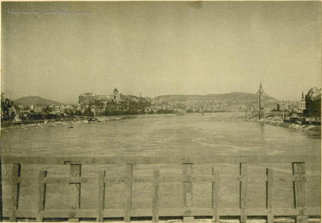 [A háború utáni Budapest látképe a Ferenc József (ma Szabadság) hídról]