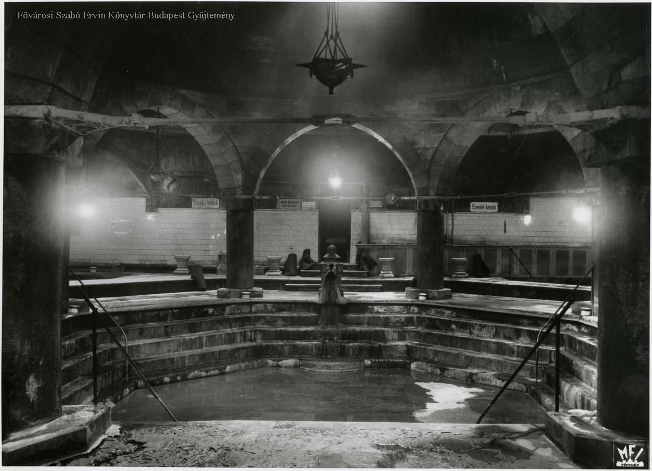 gyógyfürdő, medence, lépcső, korlát, kút, kupola, boltozat, épületfotó, belső felvétel, 1937 után