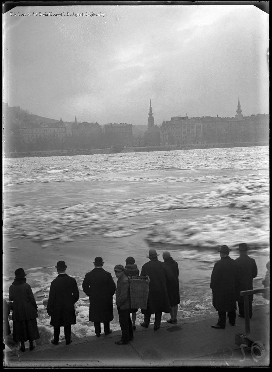 [Jégzajlás a Dunán, 1929. március] [nézelődök a parton]