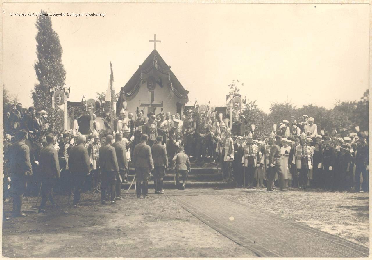 Szerző: azonosítatlan, feltehetőleg Müllner János; a képen talált könyvtárosi ráírás szerint 1925-ös a kép, a BTM Kiscelli Múzeumban található hasonló fotó alapján inkább az 1922. augusztus 15.i első vitézzé avatáson készült a felvétel