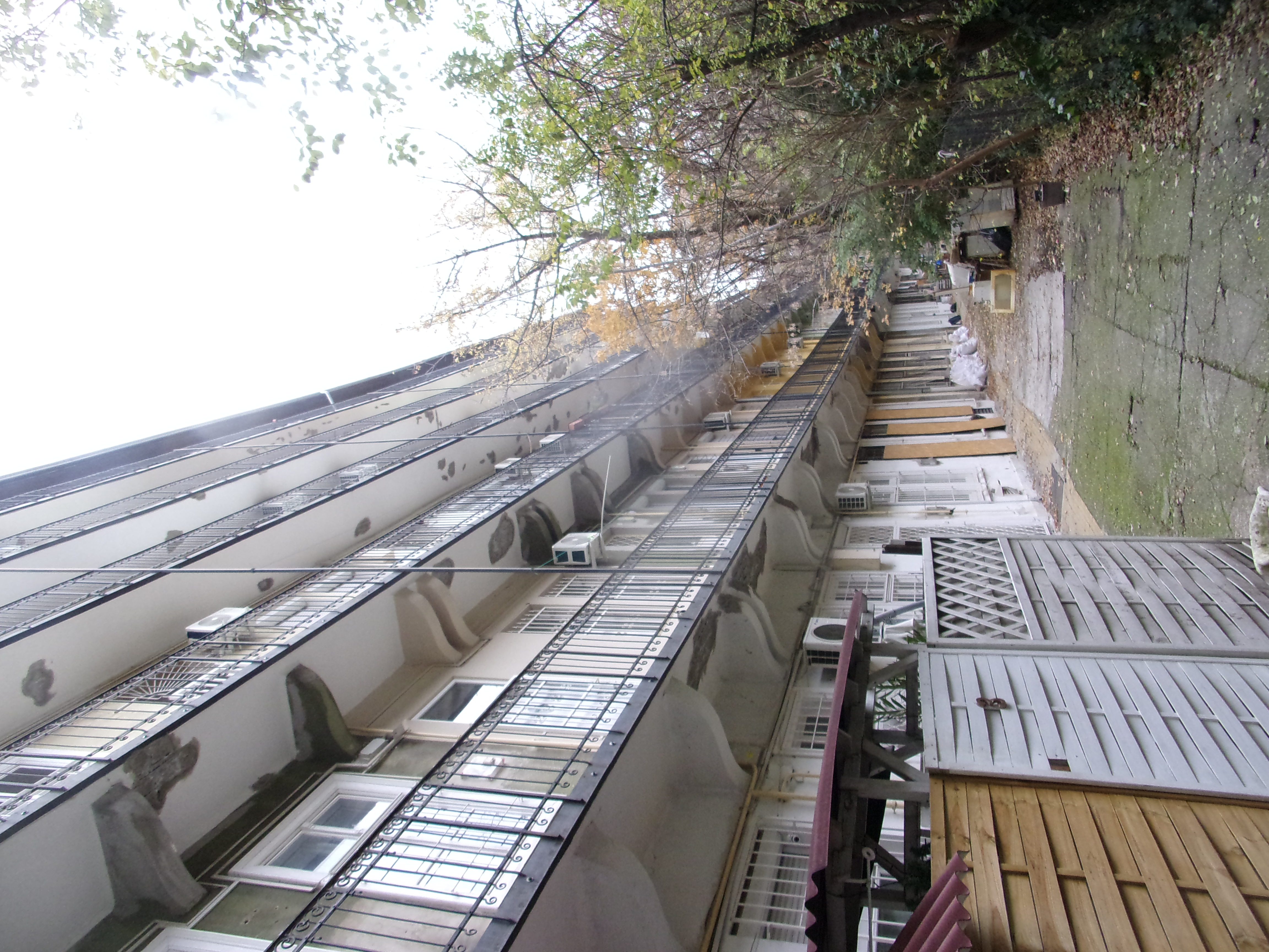 A lakásokat csak kívülről lehetett megnézni. Egyes lakók rendbe tették a lakás közvetlen környezettét, a folyosót tatarozták, kifestették, többen klímát szereltek fel. Az első szinten és az utcai lakások felé jellemző a külön rács. Már ránézésre is meg lehet állapítani, melyek a rövid távra kiadó, Airbnb-es lakások. Ezek nemcsak tatarozottak, klímások, hanem a kulcsdoboz is ott a bejáratnál, jellemzően a rácson.