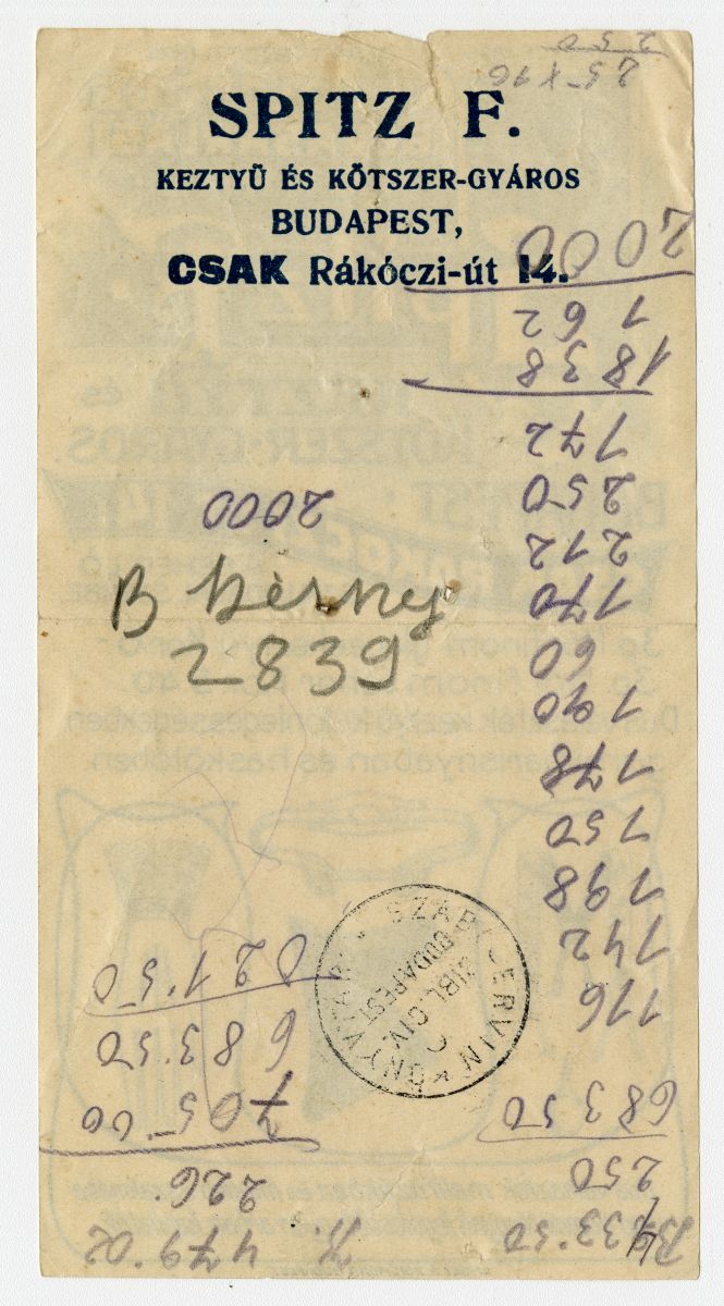 Cégnév:Spitz F. kesztyű és kötszer-gyáros