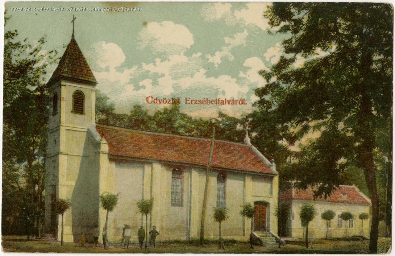 Az egykori Templom téren 1876 és 1913 között álló régi erzsébetfalvi templom