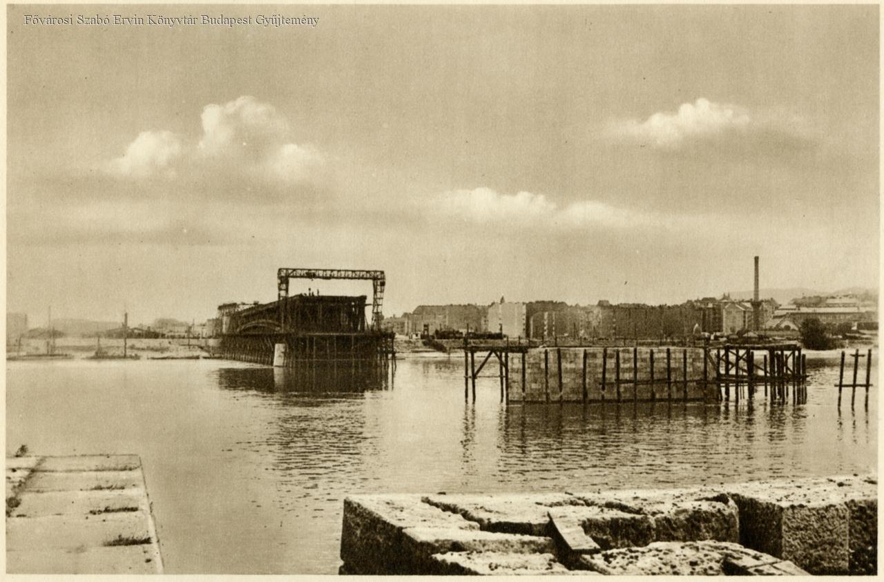 A budai oldal pályaszerkezetének nagyrésze kész, előtérben mederpillér