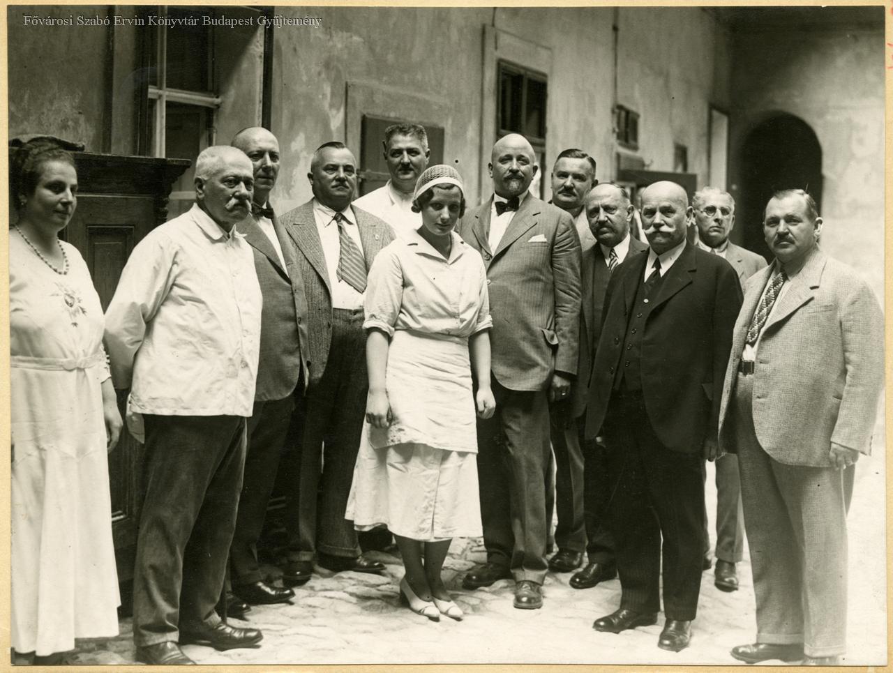 A képen balról jobbra láthatóak: Tóth Ferencné, Ruszwurm Vilmos, Rosta Sándor ipartestületi jegyző, Wiener József cukrászmester, Tóth Ferenc, báró Korányi Blanka, Spelter Henrik ipartestületi elnök, Szikora József cukrászmester, Lipcsey az ipartestülettől, Hauer Rezső, az ipartestület díszelnöke, Rodé Károly ipartestületi jegyző, és Németh János cukrászmester