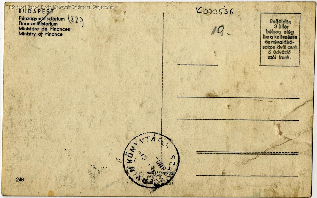 Budapest Pénzügyminisztérium = Finanzministerium = Ministére de Finances = Ministry of Finance /