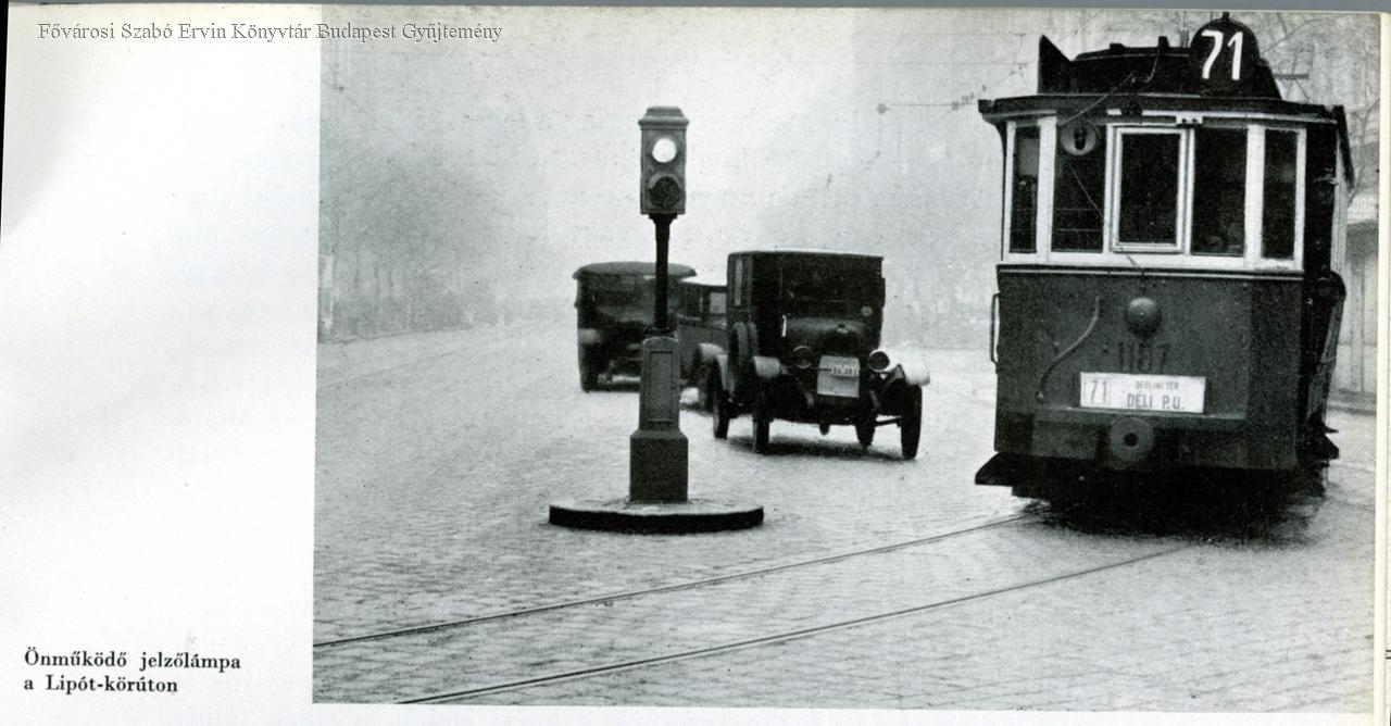 közúti közlekedés, közlekedési jelzőlámpa, gépjármű, villamos kocsi, külső felvétel, 1934