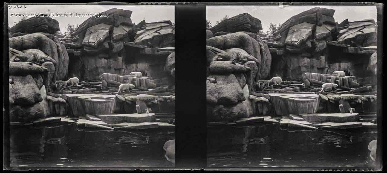 [Állatkert, jegesmedvék a Kissziklánál] [Budapest Zoo, polar bears at the Small Rock]