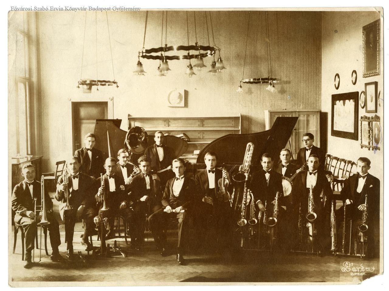 [Dzsesszzenekar a Zeneakadémia egyik helyiségében]