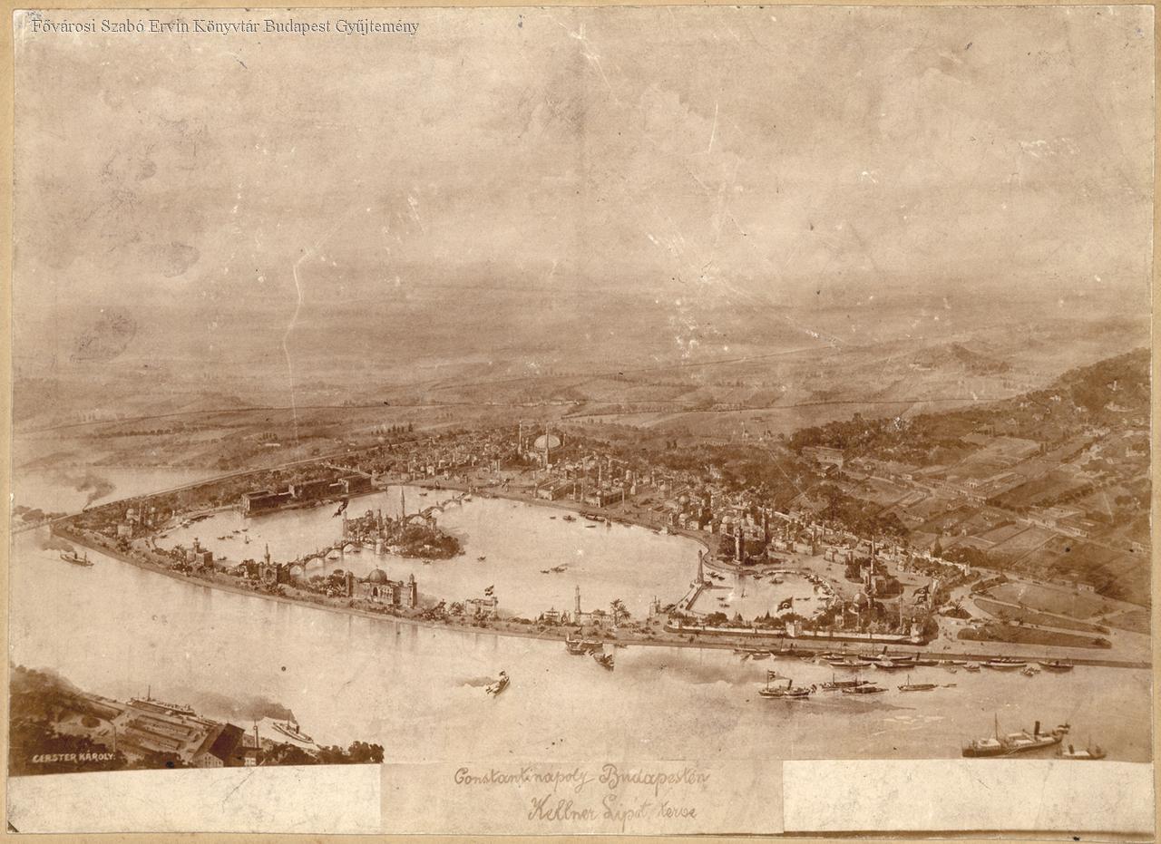 szórakozóhely, millennium, ezredév, történeti évforduló, tervrajz, szórakozás, szórakozóhely, vendéglátás, madártávlat, látkép, 1896 körül