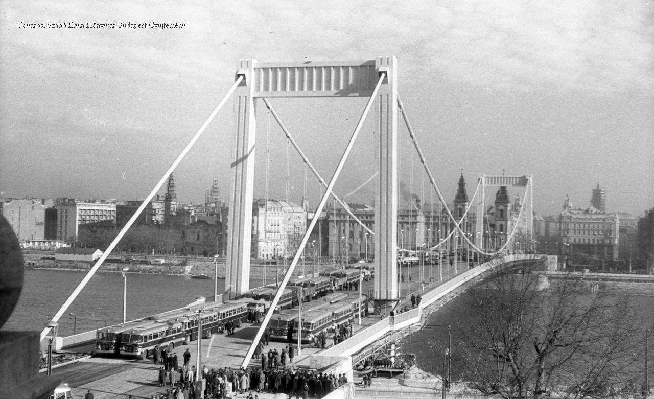 híd, ember, gépjármű, autóbusz, közúti villamos, teszt, műszaki ellenőrzés, eseménykép, 1960-as évek