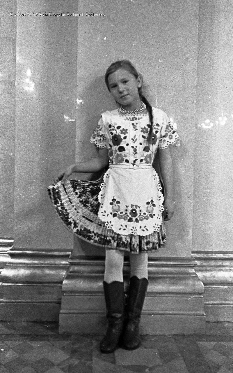 belső felvétel, úttörőmozgalom, karácsony, ünnepség, ember, gyermek, lány, jelmez, népviselet, 1960-as évek