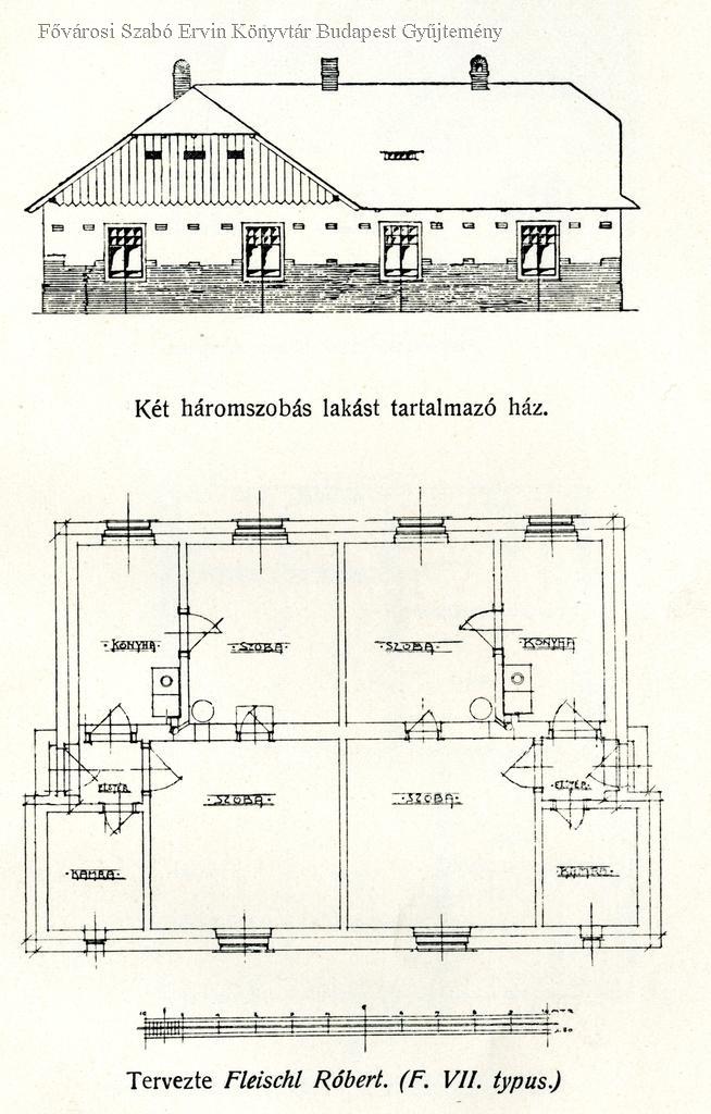 Két háromszobás lakást tartalmazó ház, tervezte Fleischl Róbert (F. VII. typus) [A kispesti Állami Munkástelep lakóházai]