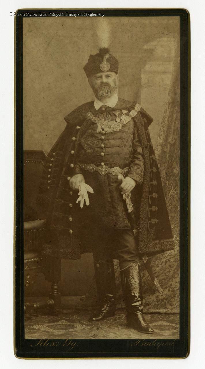 köztisztviselő, tisztségviselő, politikus, alpolgármester, jogász, férfi, díszmagyar, kitüntetés, műtermi portré, egészalakos kép, 1885