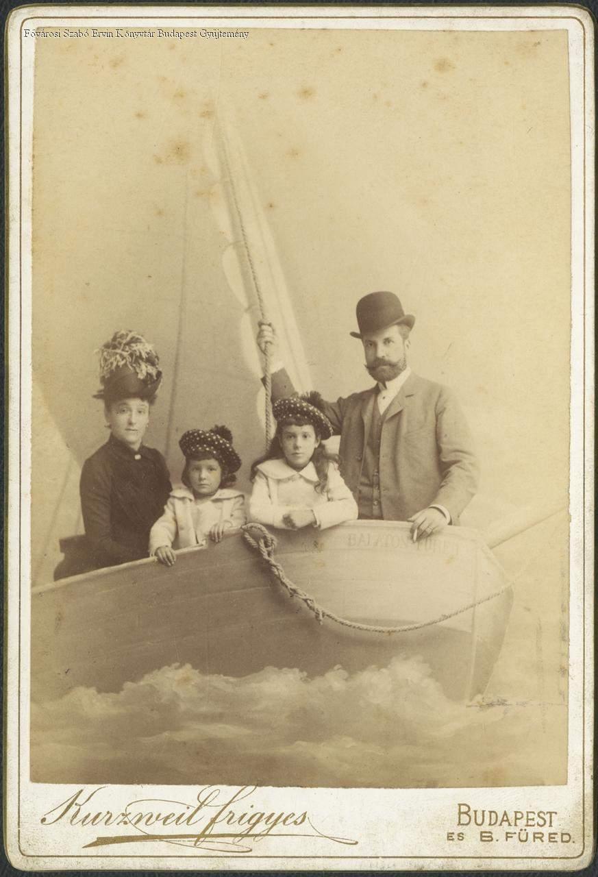 arisztokrácia, nő, férfi, gyermek, lány, műtermi portré, családi kép, díszlet, hajó, 1894