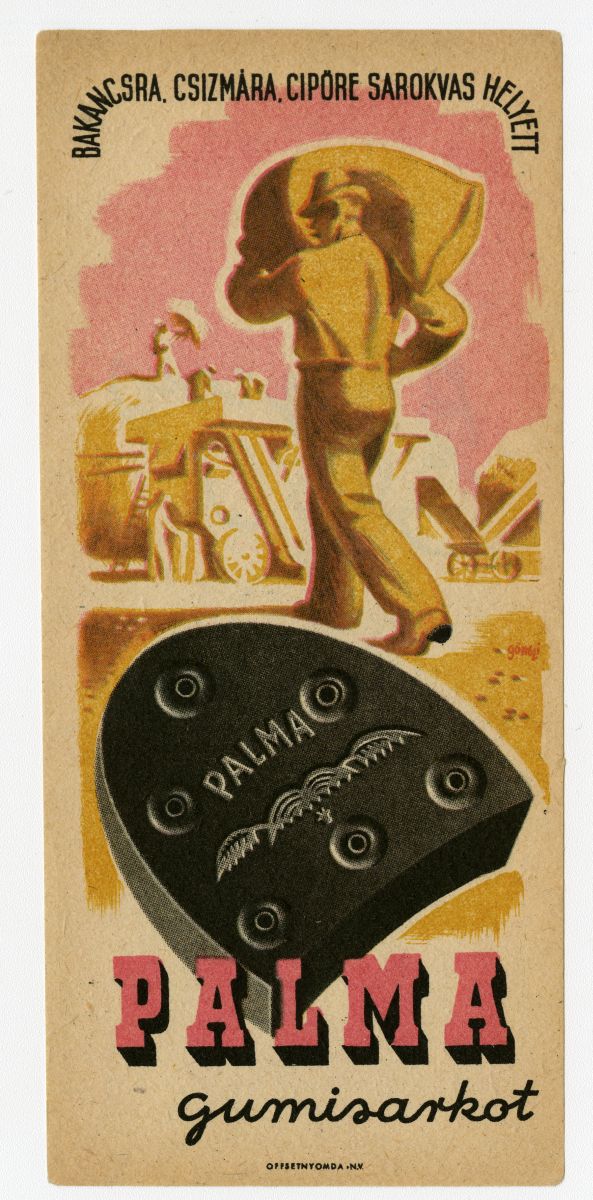 sarok, talp, vas, gumi, férfi, aratás, munkavégzés, mezőgazdasági munka, zsák, gabona, cséplőgép, reklámnyomtatvány, kisnyomtatvány, aprónyomtatvány, számolócédula