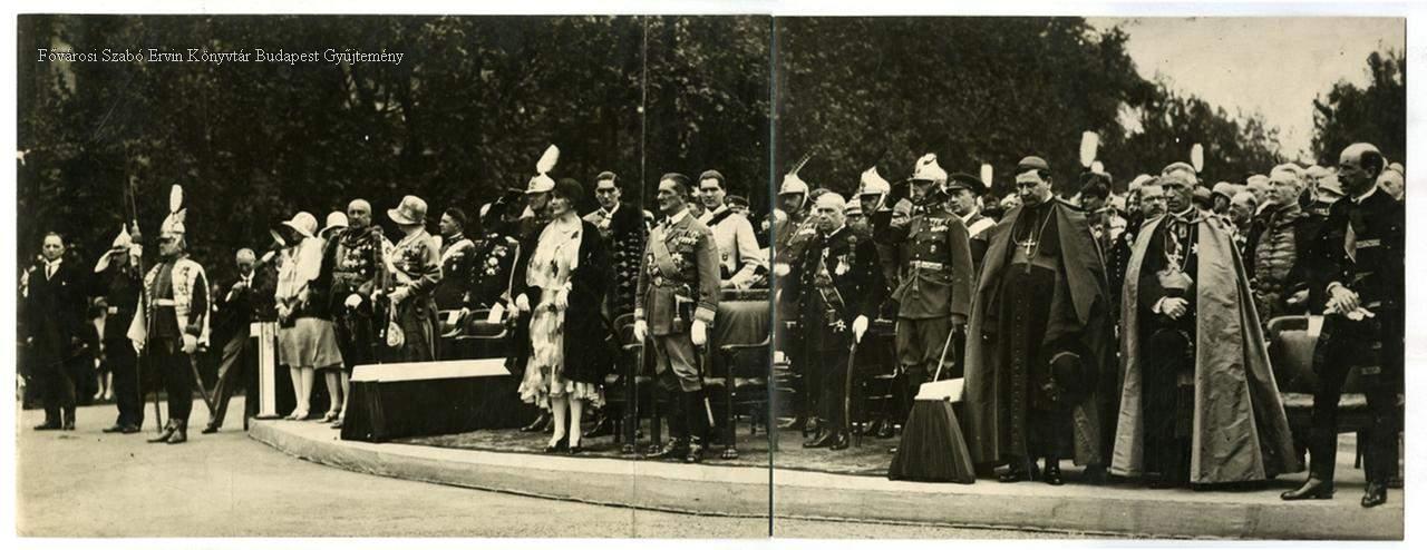 Az ünnepségen részt vett Horthy Miklós kormányzó (középen) feleségével és fiaival, balján Vértessy Sándor kabinetfőnök és (feltehetően) Keresztes-Fischer Lajos, a Honvéd Vezérkar főnöke, majd Serédi Jusztinián hercegprímás, Orsenigo Cesare pápai nuncius. A két egyházi személy között Sipőcz Jenő, Budapest polgármestere, a kép jobb szélén pedig Bethlen István miniszterelnök látható. A kép bal oldalán Habsburg József Ágost főherceg és Auguszta főhercegasszony.