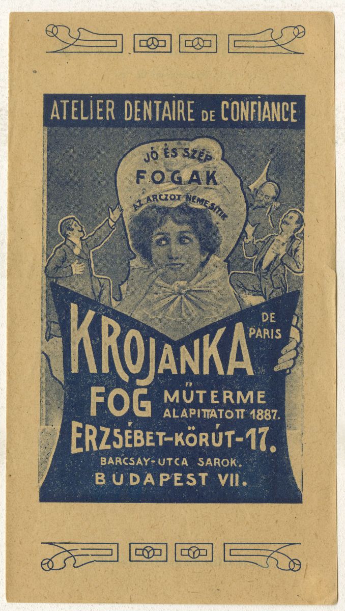 Jó és szép fogak az arcot nemesítik. Krojanka de Paris fog műterme. Alapíttatott 1887.