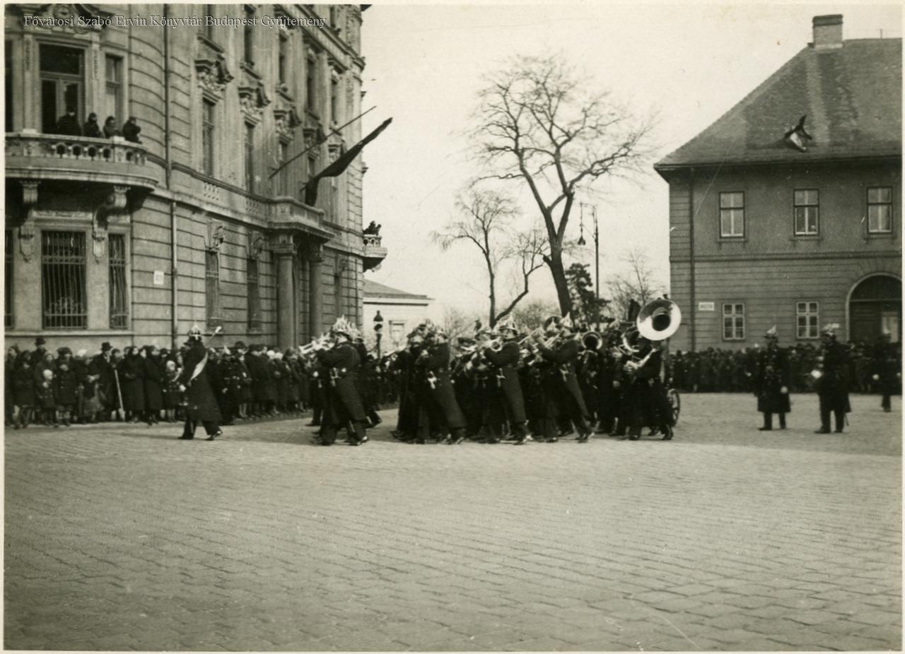 gyászszertartás, politikus, miniszter, külügyminisztérium, temetési menet, közönség, gyászolás, fúvószenekar, egyenruha, 1933
