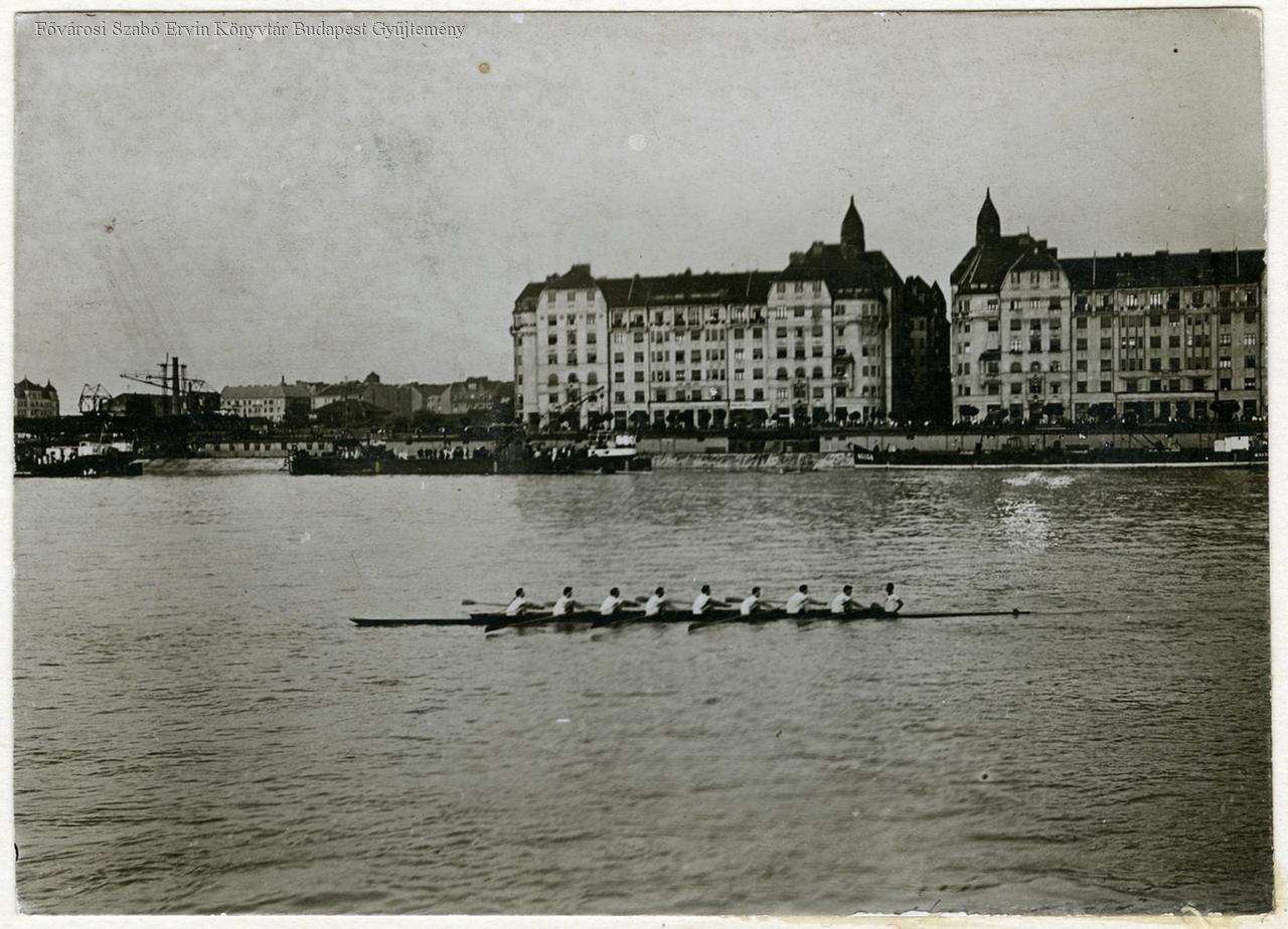 [Nyolcevezős versenyhajó a Dunán]