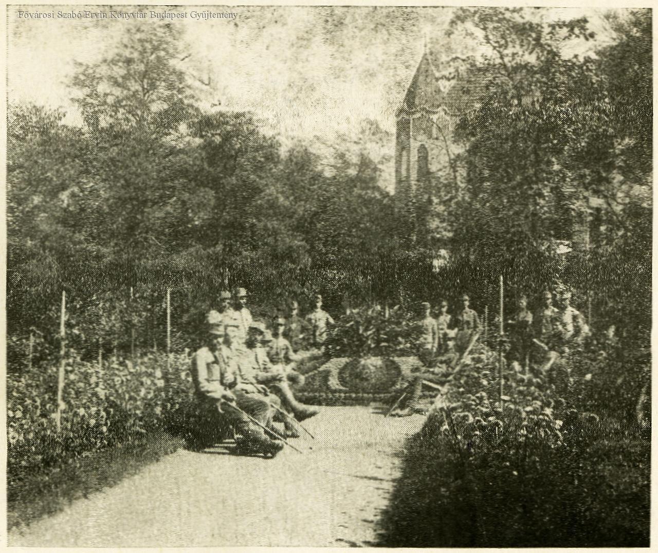 első világháború, hadirokkant, háborús sebesült, lakóépület, homlokzat, kert, katona, munkavégzés, 1917