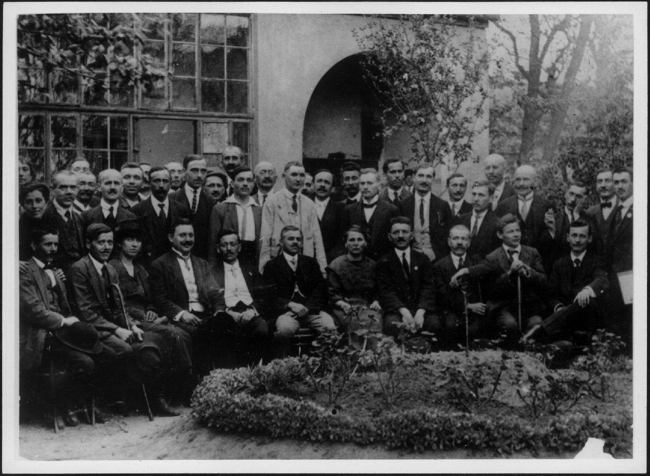 énekkar, munkás, udvar, egyesület, csoportkép, 1918