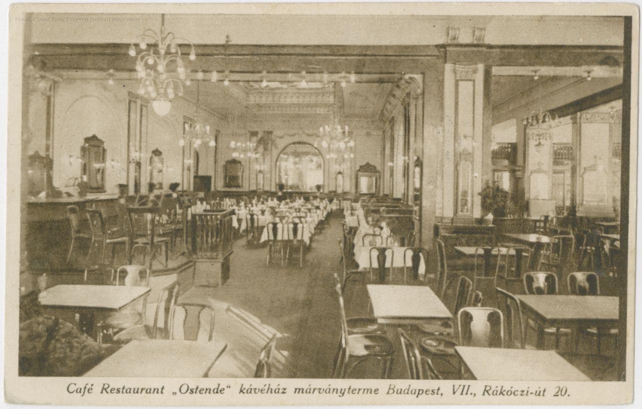 Café Restaurant "Ostende" kávéház márványterme Budapest, VII., Rákóczi-út 20. : levelező-lap
