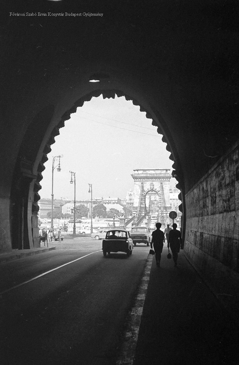 külső felvétel, híd, alagút, ember, személygépkocsi, 1960-as évek