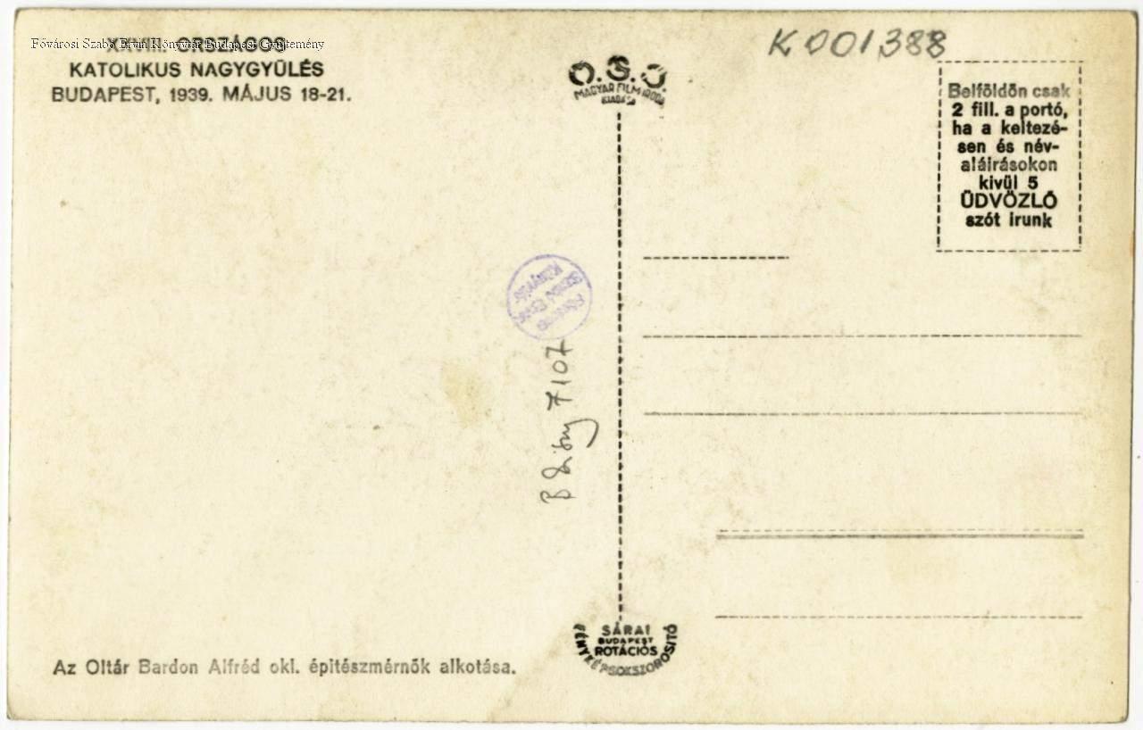 katolikus egyház, társadalmi renezvény, gyűlés, hitélet, oltár, képes levelezőlap, 1939