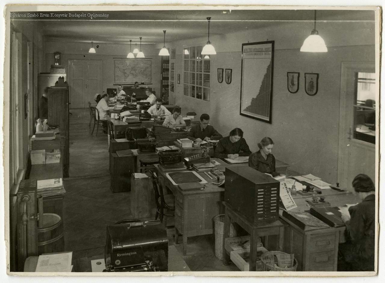 iroda, irodaberendezés, irodai munka, dolgozó, élelmiszeripar, kereskedelem, belső felvétel, életkép, 1940-es évek