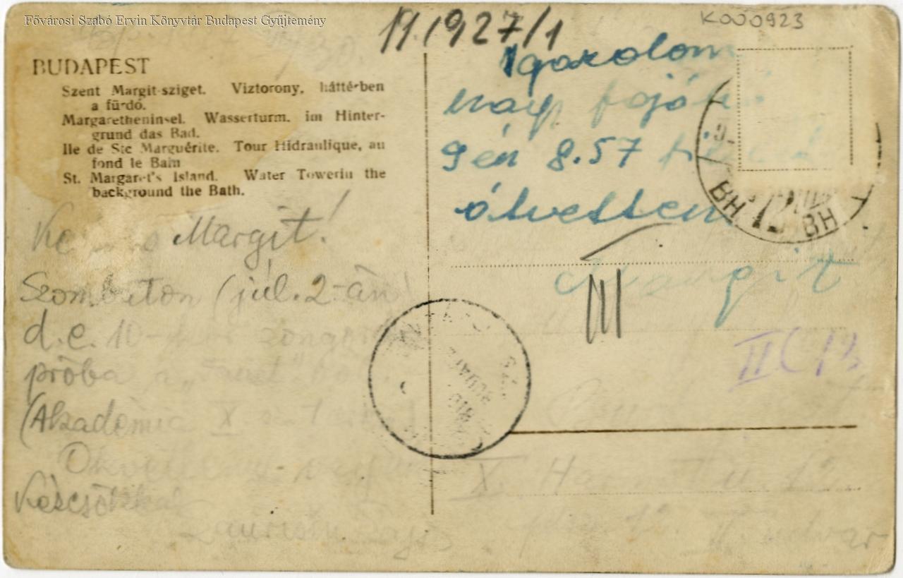 képes levelezőlap, sziget, víztorony, 1927